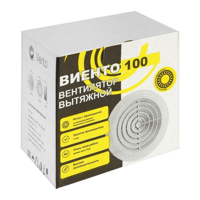 Вентилятор вытяжной "виенто" 100ДФ, d=100 мм, 14 Вт, 130 м³/ч, 30 дБ, белый интересное: