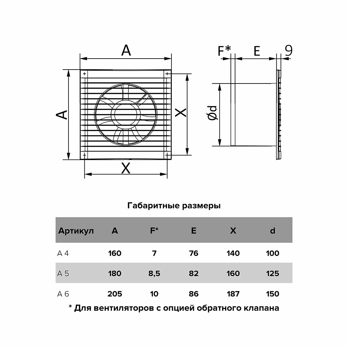 Вытяжной вентилятор Auramax A 4 C с обратным клапаном, D 100 мм