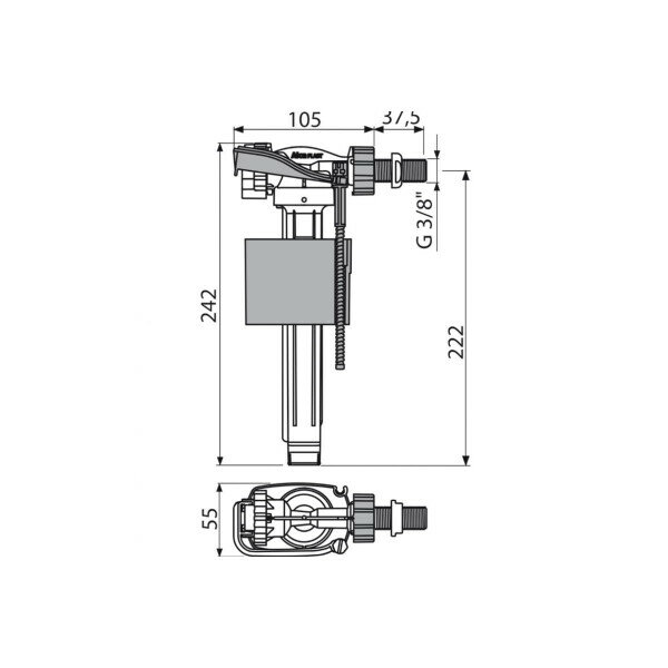 Клапан Впускной механизм для сливного бочка унитаза Alcaplast с боковой подвод латунь 3/8. Чешский /Наливная/Заливной
