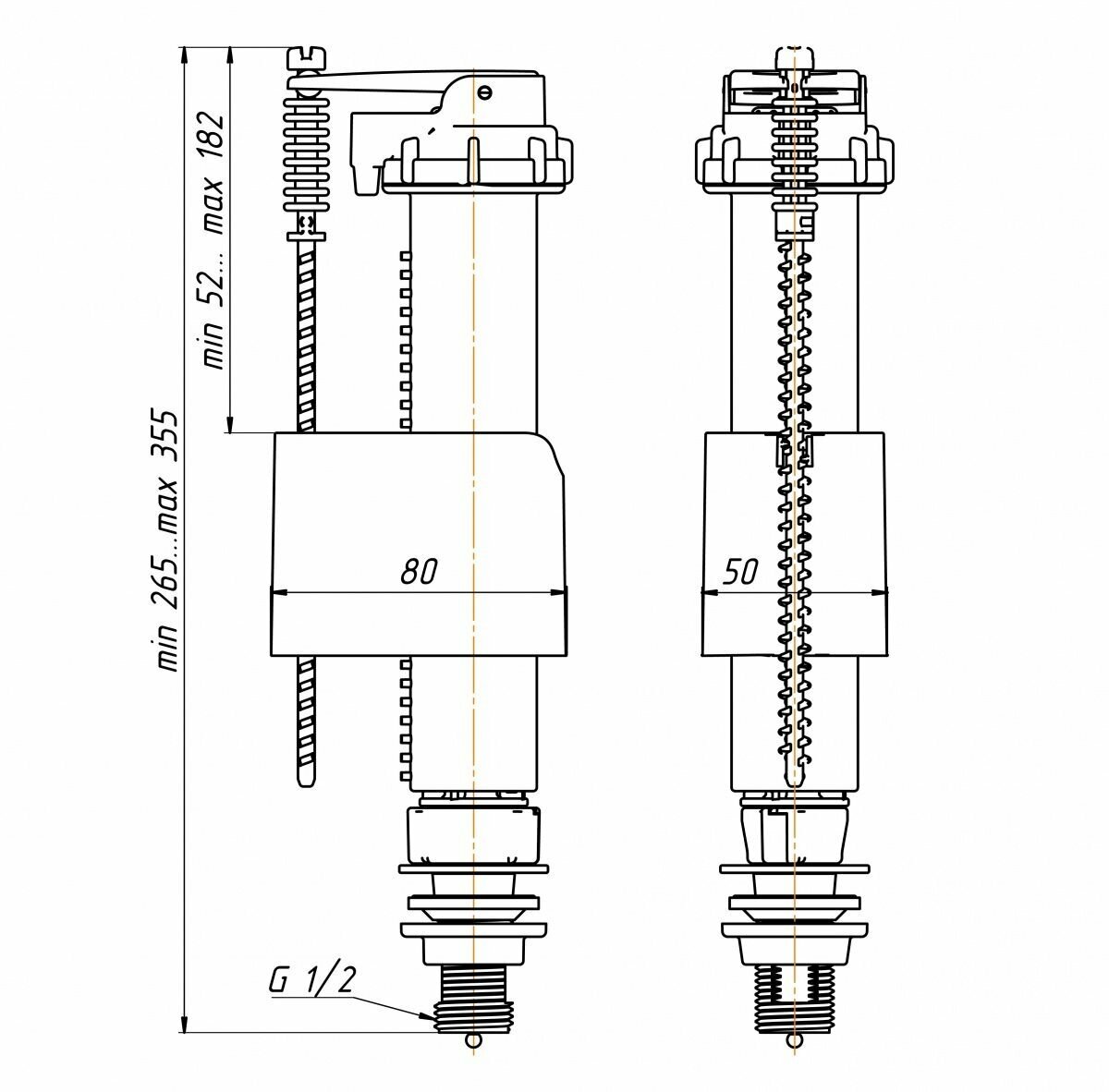 Арматура боковая для бачка АНИ Пласт 265х85 мм