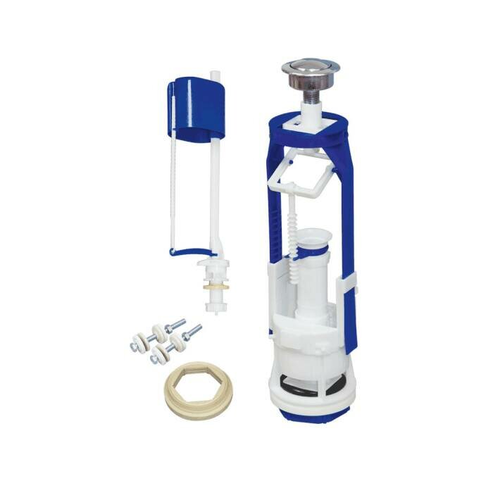 Арматура для смывных бачков "РБМ" АС-12.1, с нижним плоским донным клапаном, кнопка белая