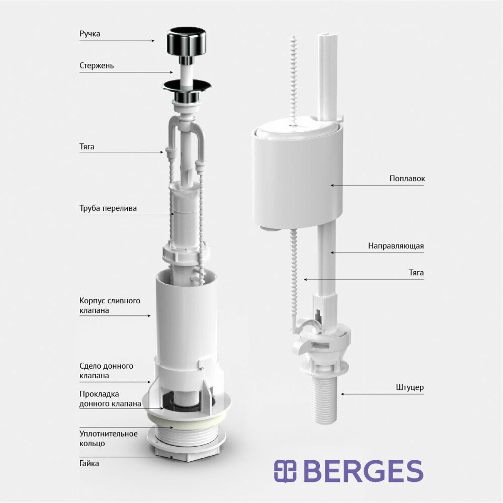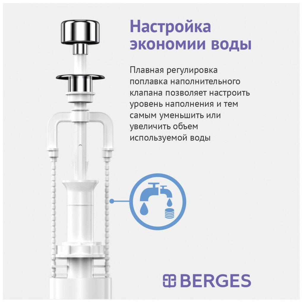 Комплект арматуры для смывного бачка BERGES Eko 01, арт 030101 интересное: