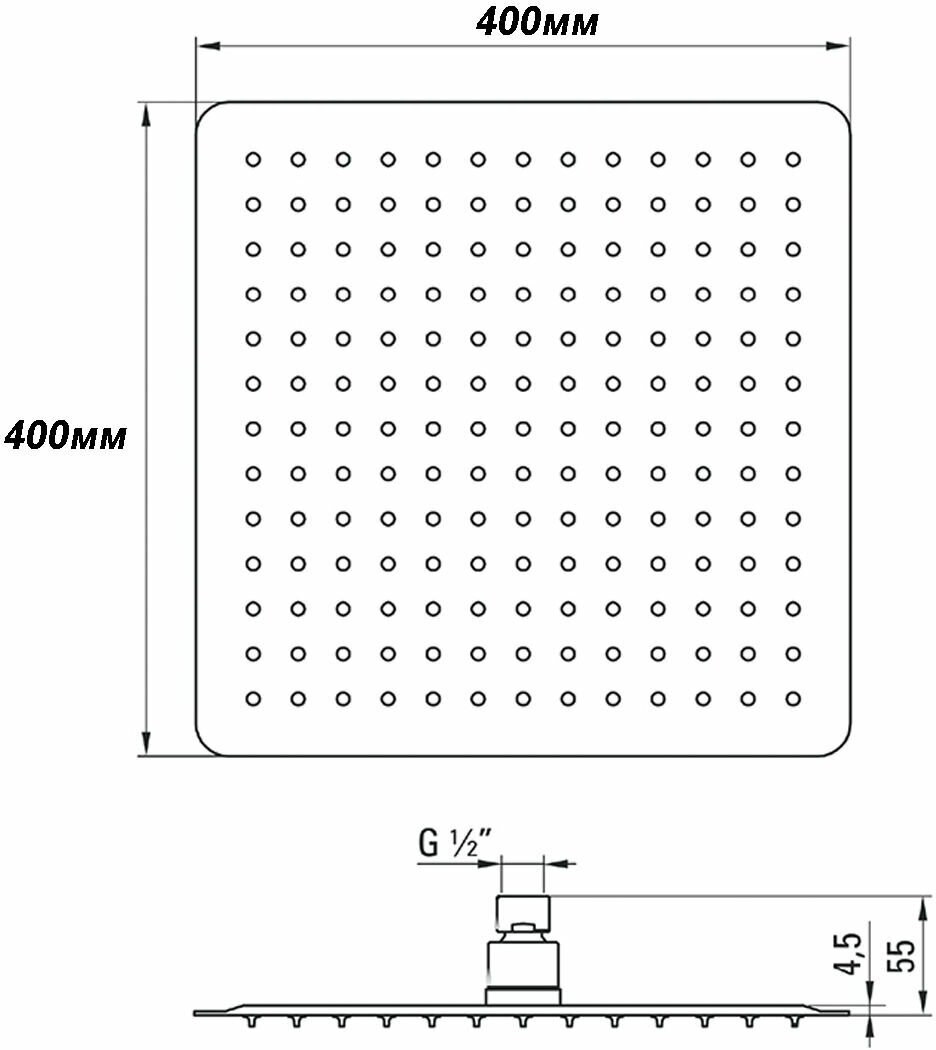 Лейка для верхнего тропического душа 400х400мм черная из нержавеющей стали. Подходит для Lemark Ledeme Gappo Elghansa Fashun Frap Haida Timo