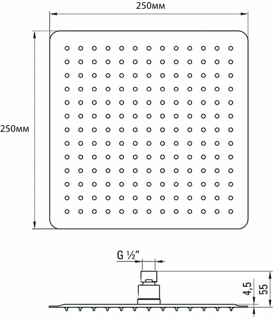 Лейка для верхнего тропического душа 250х250мм черная из нержавеющей стали. Подходит для Lemark Ledeme Gappo Elghansa Fashun Frap Haida Timo