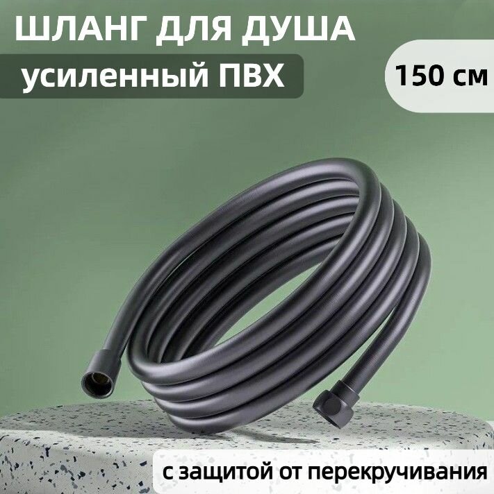 Шланг для душа 1,5 метра ПВХ чёрный матовый 1/2-1/2