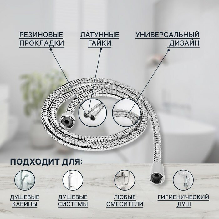 Душевой шланг ZEIN Z15PS, 150 см, гайки пластик, запрессовочная втулка пластик, хром интересное: