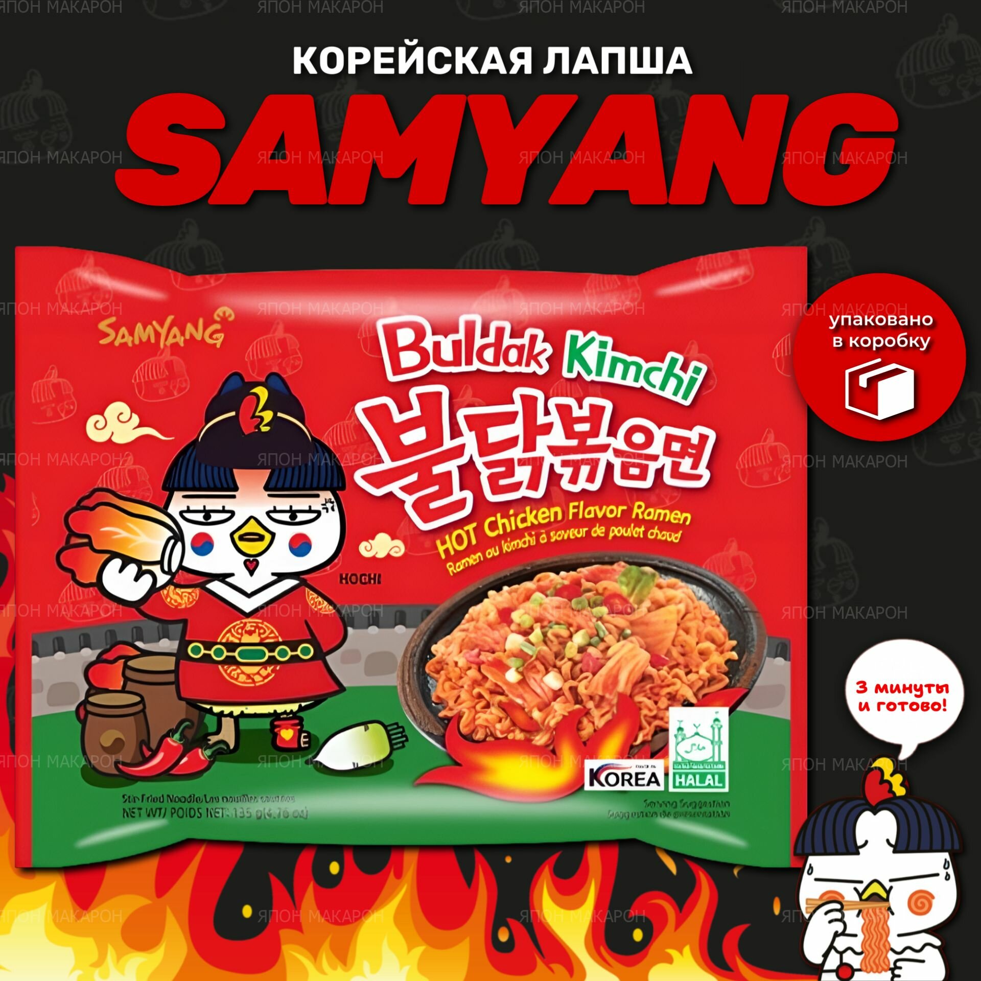 Корейская лапша быстрого приготовления SAMYANG Buldak со вкусом острой курицы и кимчи 1шт/Острая лапша/Hot Chicken Kimchi Ramen