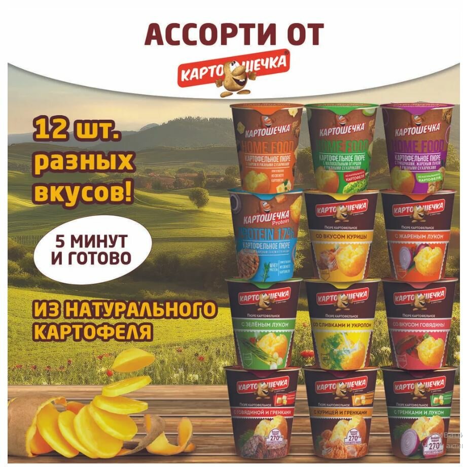 Картофельное пюре ассорти короб Картошечка, термостакан - 12 шт. интересное: