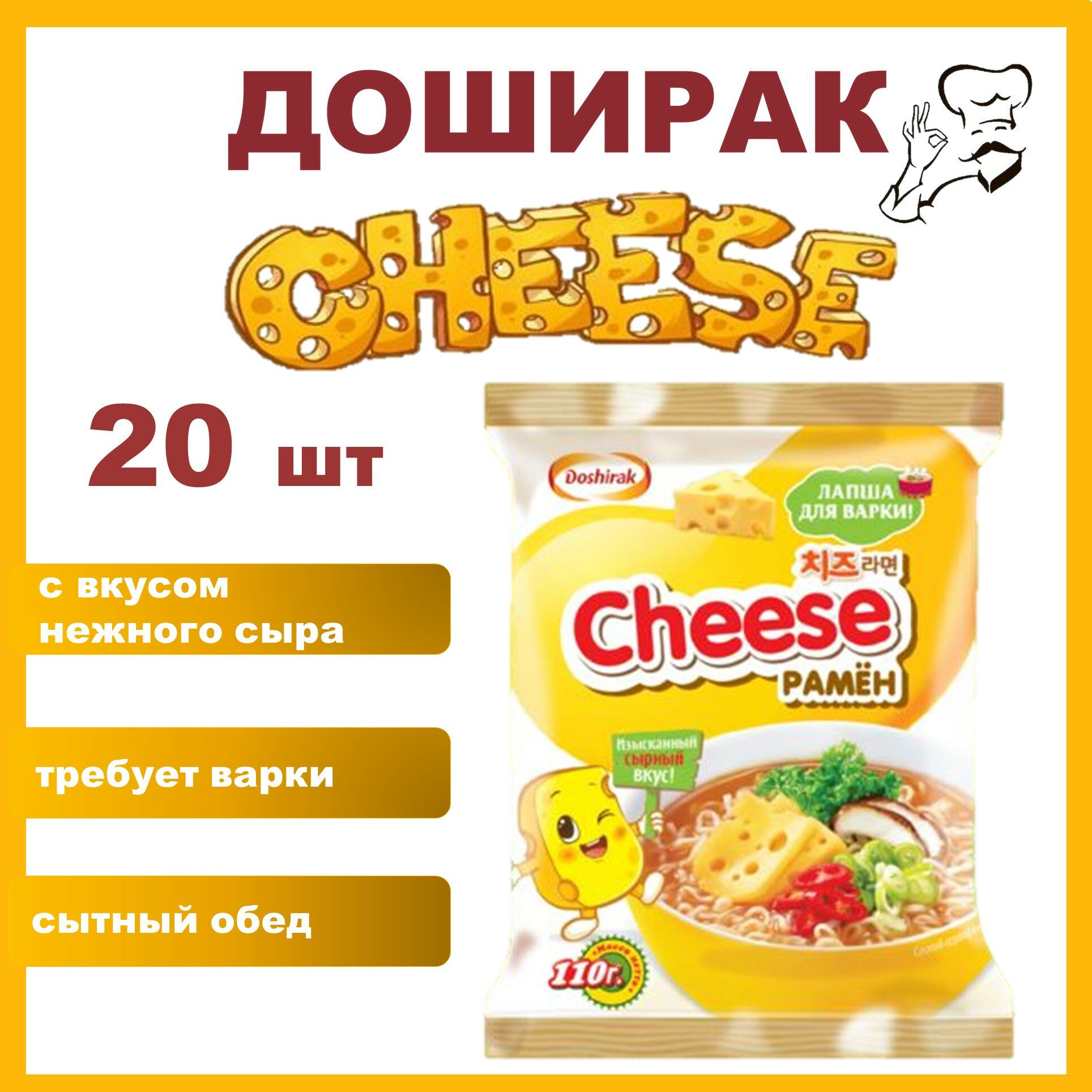 Купить Doshirak Чиз рамен с сыром 20 шт * 110 г в брикетах