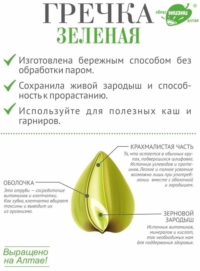 Гречка зеленая алтайская для каш и проращивания, 5 кг интересное: