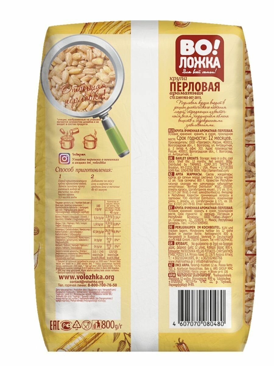 Крупа ячменная перловая 2 шт по 800 г. интересное: