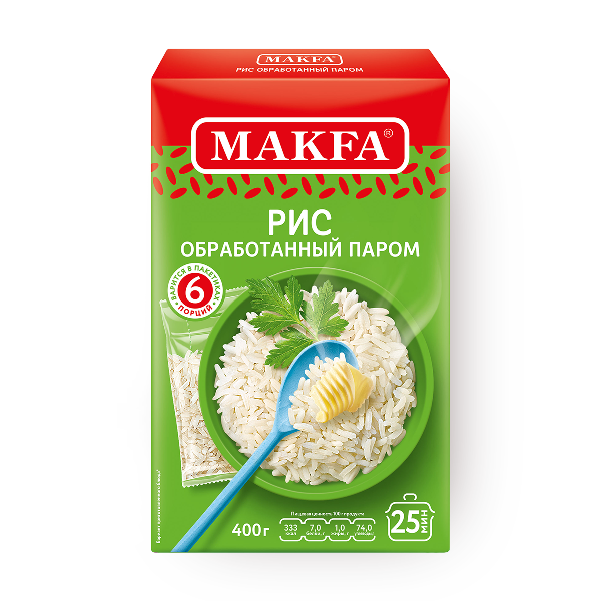 Рис длиннозерный Макфа пропаренный 400г (6 х 66,5г) к/п