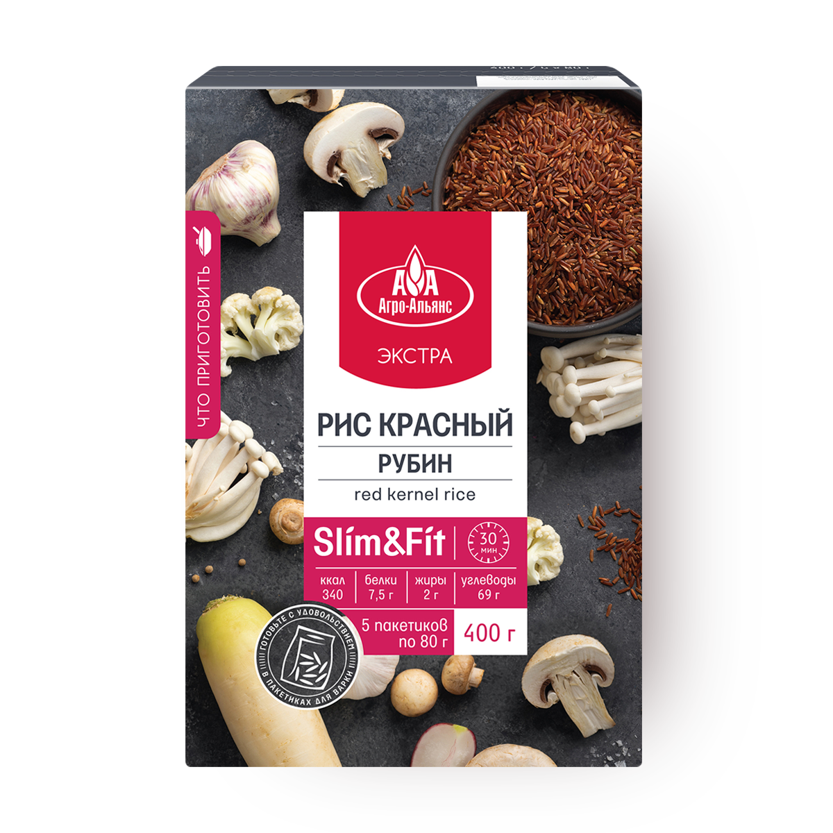 Купить Рис красный Рубин "Агро-Альянс Экстра" в пакетиках для варки 400г (5*80г)