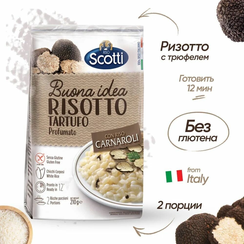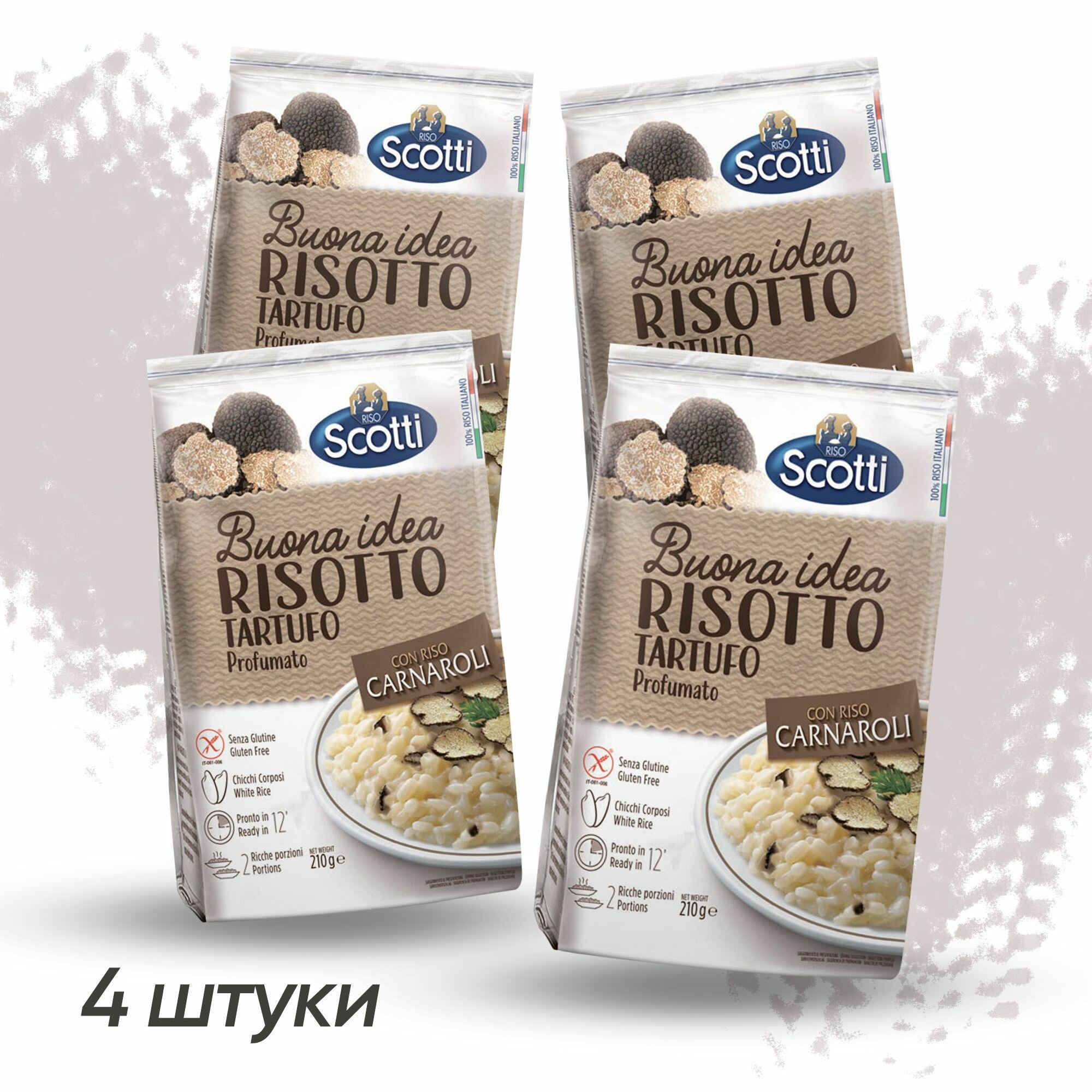 Купить Рис белый Карнароли, Ризотто с трюфелем 4 шт, Riso Scotti Risotto Tartufo 210 г, без глютена / Готовый гарнир и блюдо / Итальянские продукты