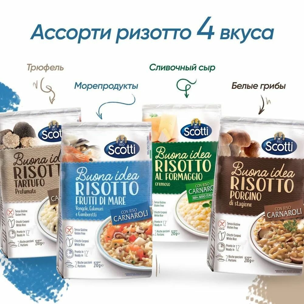 Рис белый Карнароли, Ризотто с трюфелем 4 шт, Riso Scotti Risotto Tartufo 210 г, без глютена / Готовый гарнир и блюдо / Итальянские продукты
