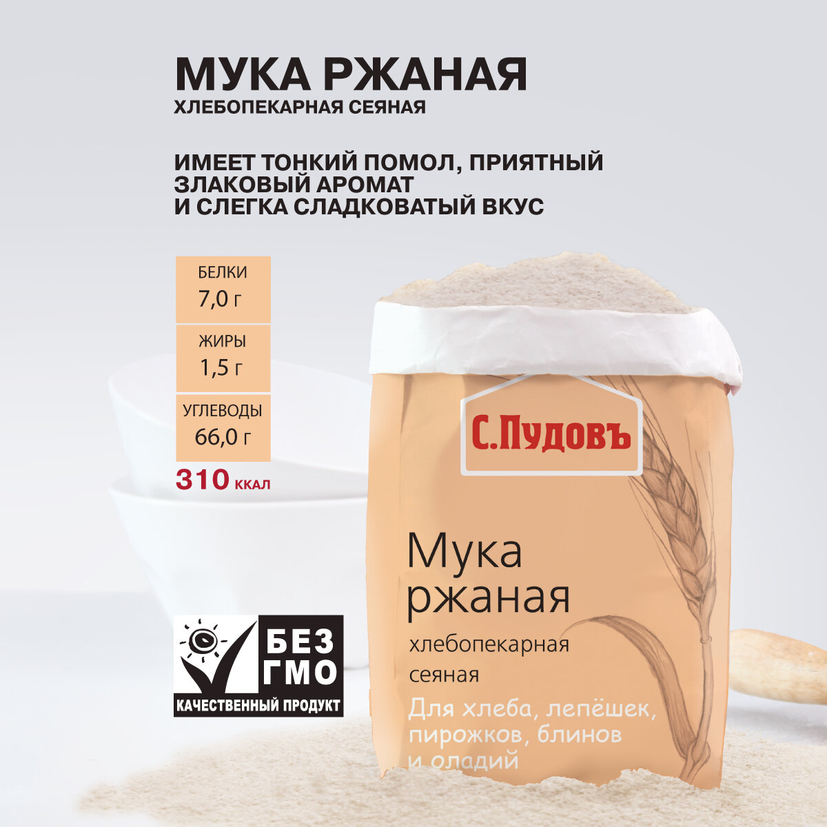 Мука ржаная сеяная С.Пудовъ, бум/пак, 1 кг интересное: