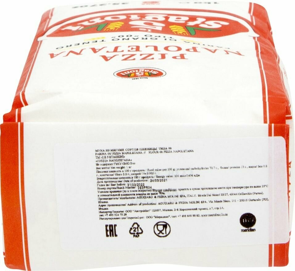 Мука "Пицца Наполетана" Le 5 Stagioni из мягких сортов пшеницы типа 00 1кг * 2 штуки интересное: