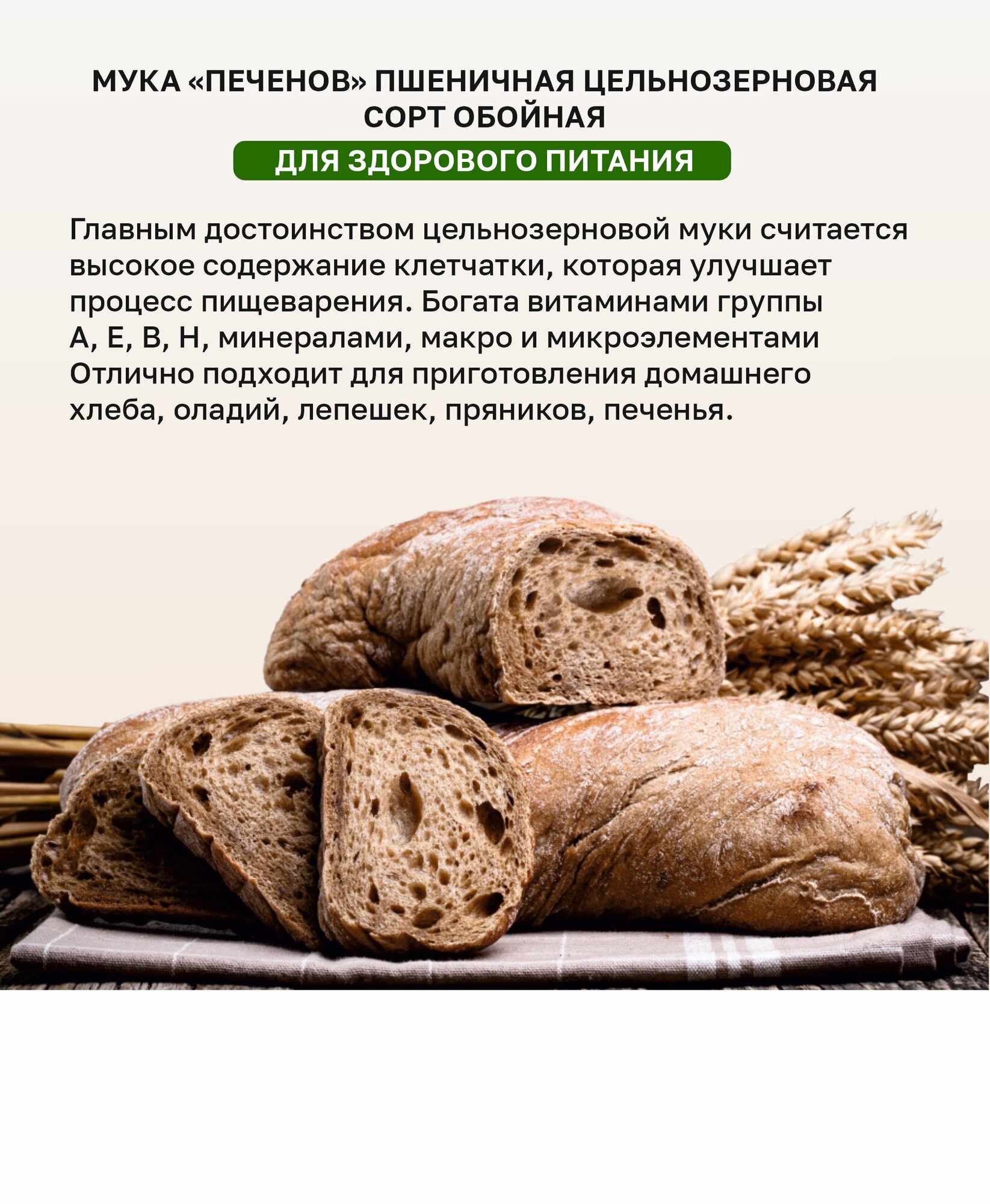 | Состав | Мука пшеничная хлебопекарная обойная (цельнозерновая) |