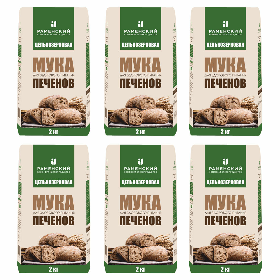Купить Раменский КХП Мука 12 КГ. Цельнозерновая пшеничная хлебопекарная сорт обойная т/м "Печенов".