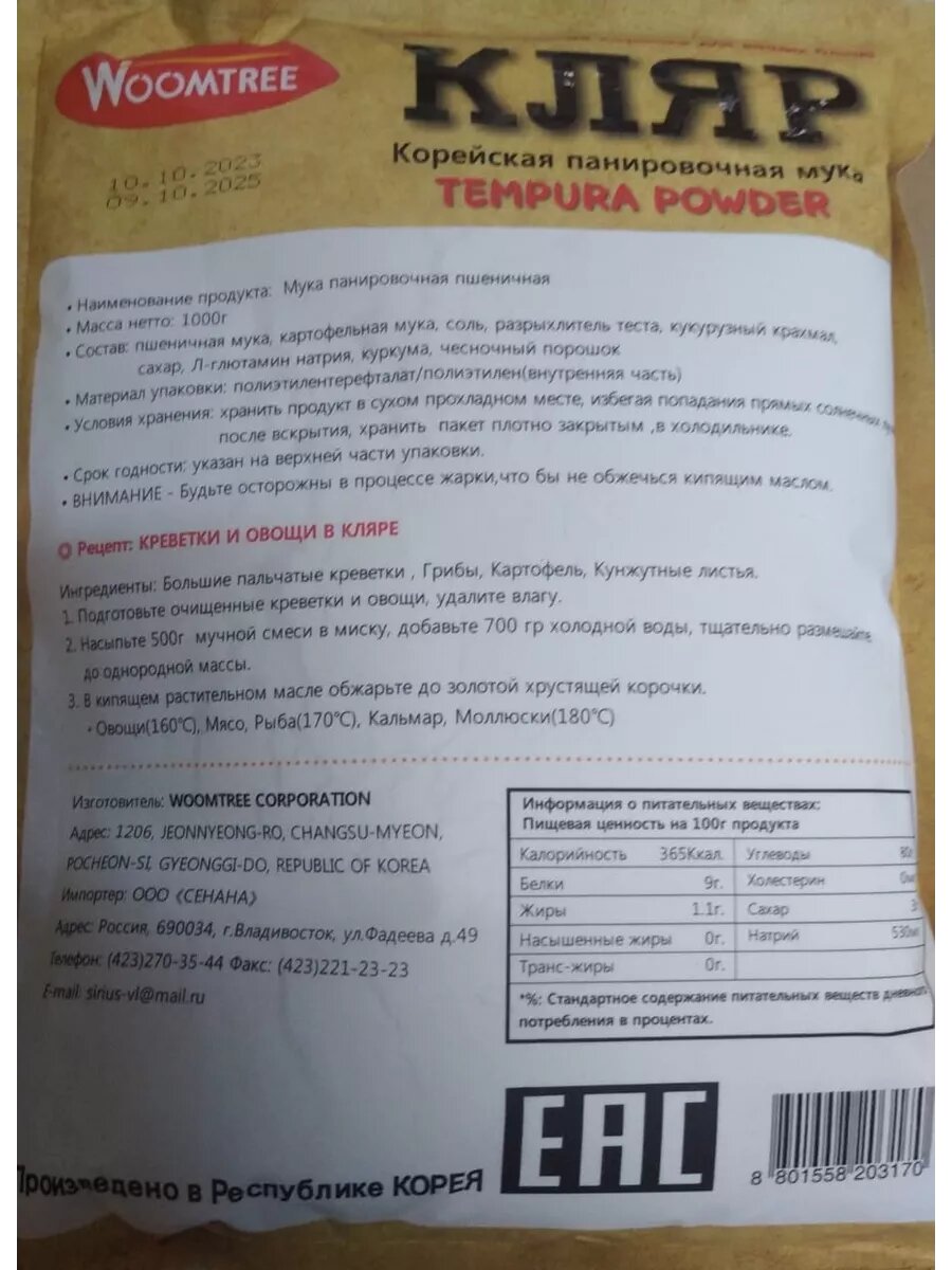 Ниже Вы можете прочитать отзывы на Кляр корейская панировочная мука Темпура 500г * 2 шт, ознакомится с подробными характеристиками, посмотреть интересные обзоры и фотографии на Кляр корейская панировочная мука Темпура 500г * 2 шт.