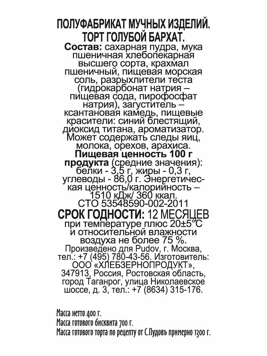 Купить Смесь для выпечки Торт Голубой бархат С.Пудовъ, 400 г