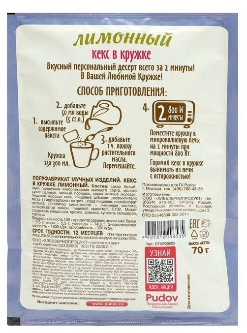 Кекс в кружке С. Пудовъ Лимонный 70г интересное: