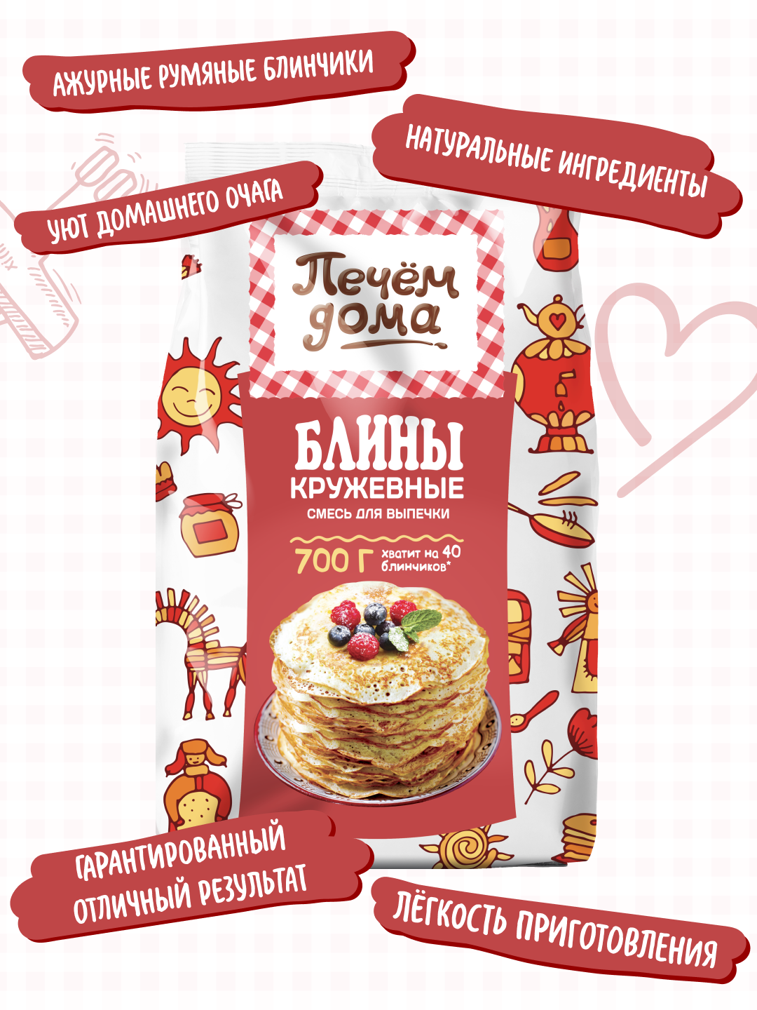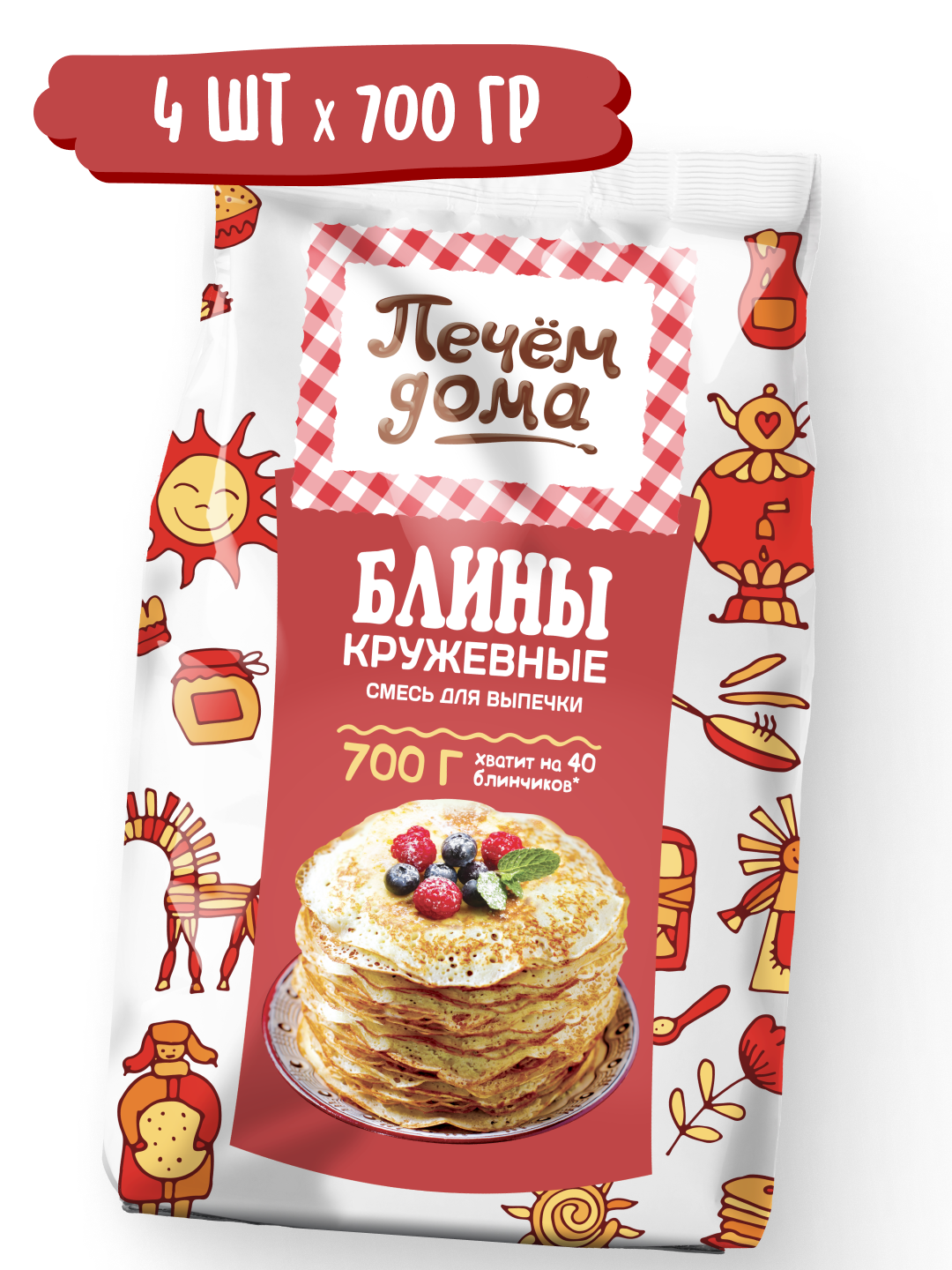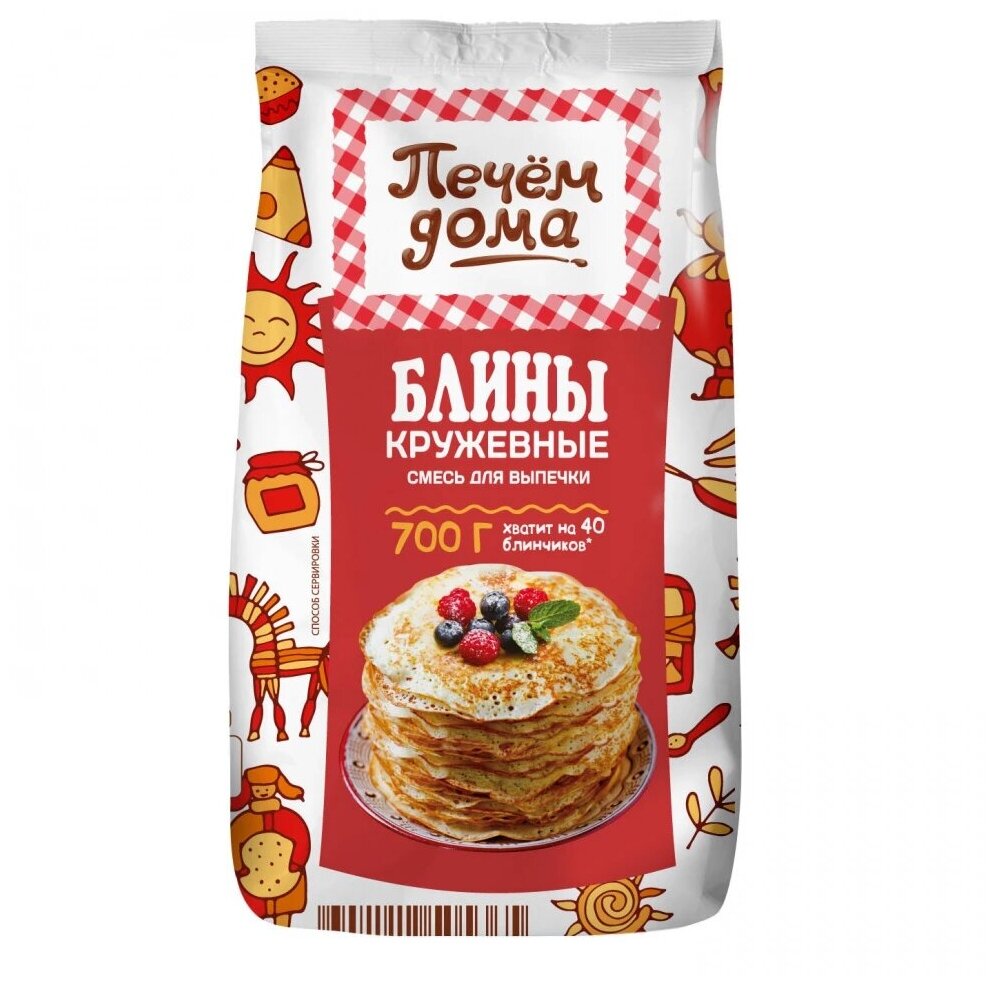 Смесь для выпечки Печем дома Блины Кружевные 700 гр x 4 упаковки в коробке, Русский Продукт интересное:
