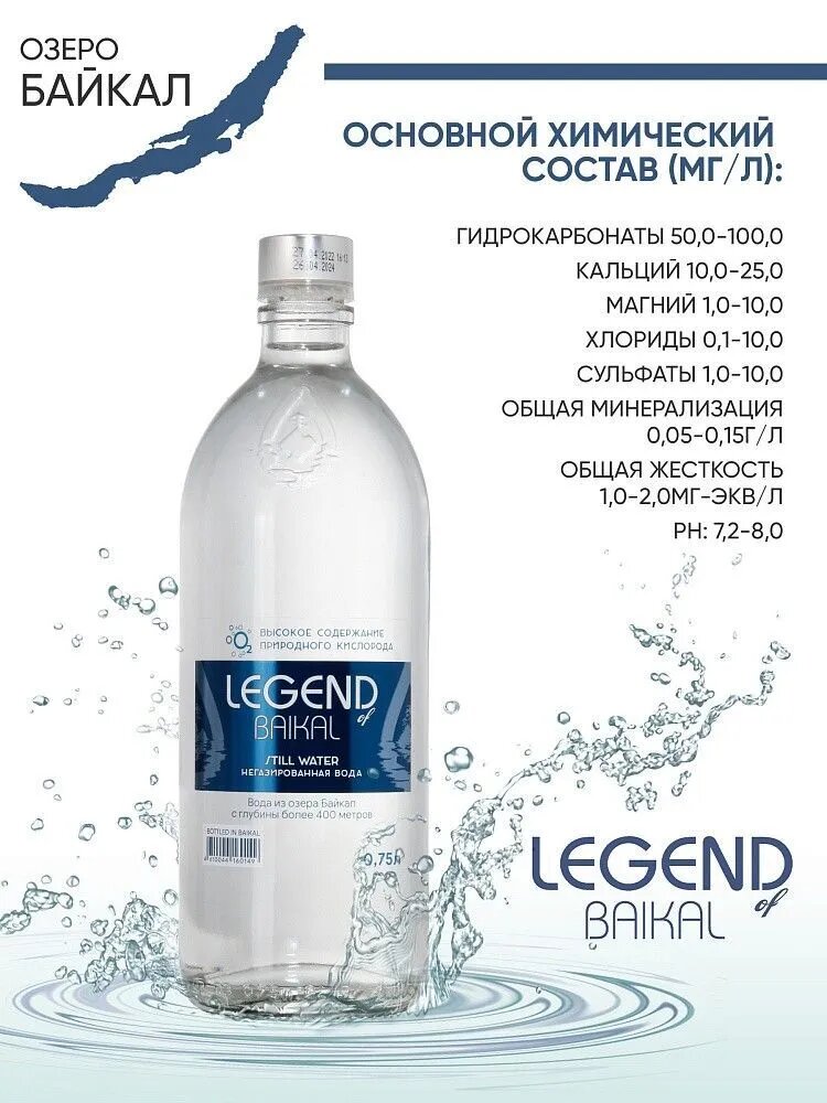 Купить Вода питьевая «Legend of Baikal» негазированная 0,75 л Стекло