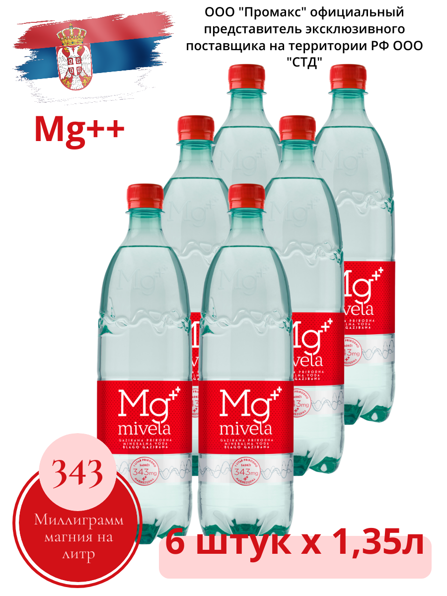 Вода минеральная природная лечебно-столовая 1,35л*6шт слабогазированная Mivela Mg++ интересное: