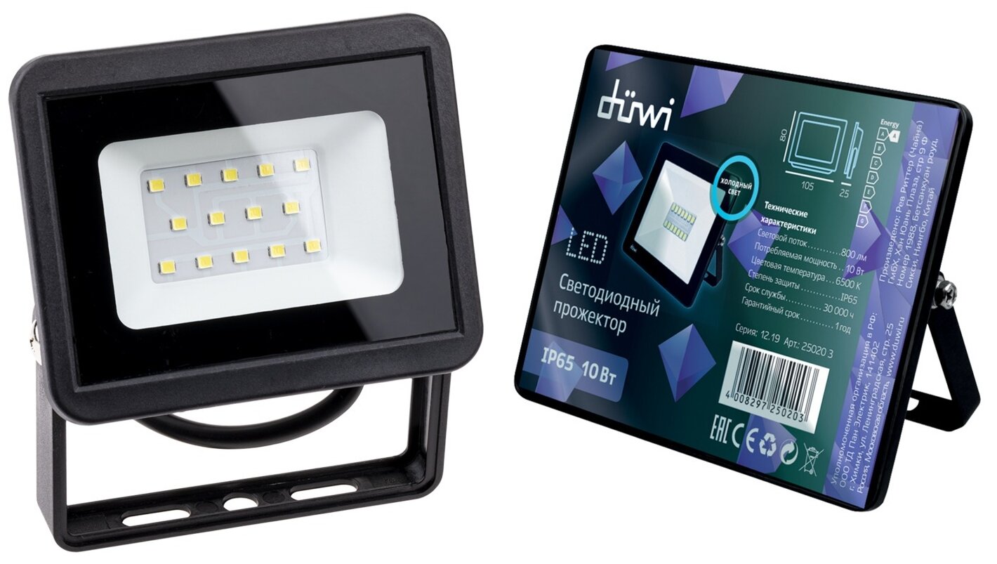 Прожектор светодиодный Duwi eco (6500K) 25020 3, 10 Вт, свет: холодный белый