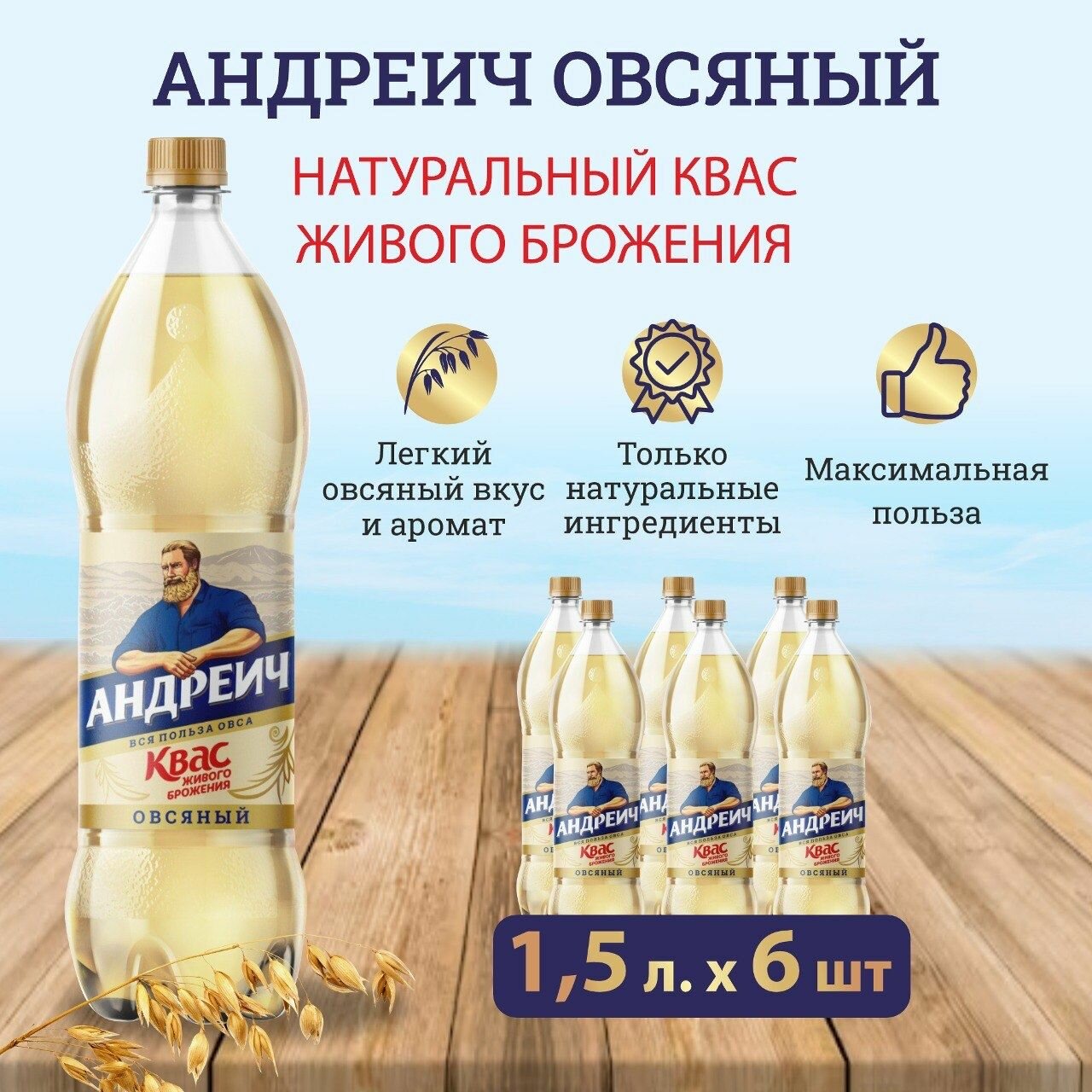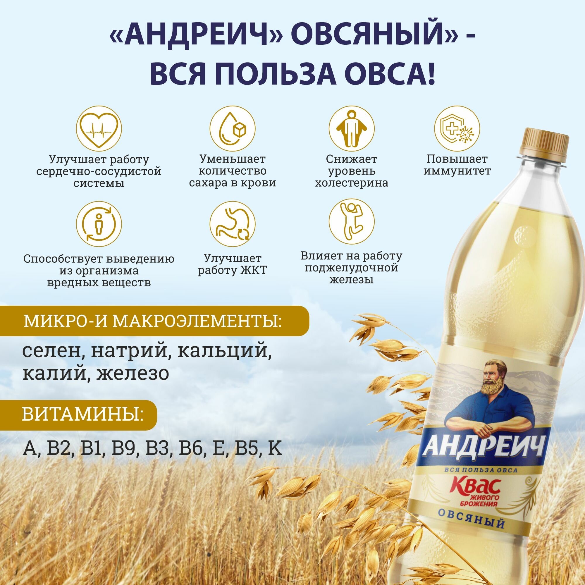 Квас Андреич "Овсяный", 1,5 л х 6 шт. интересное: