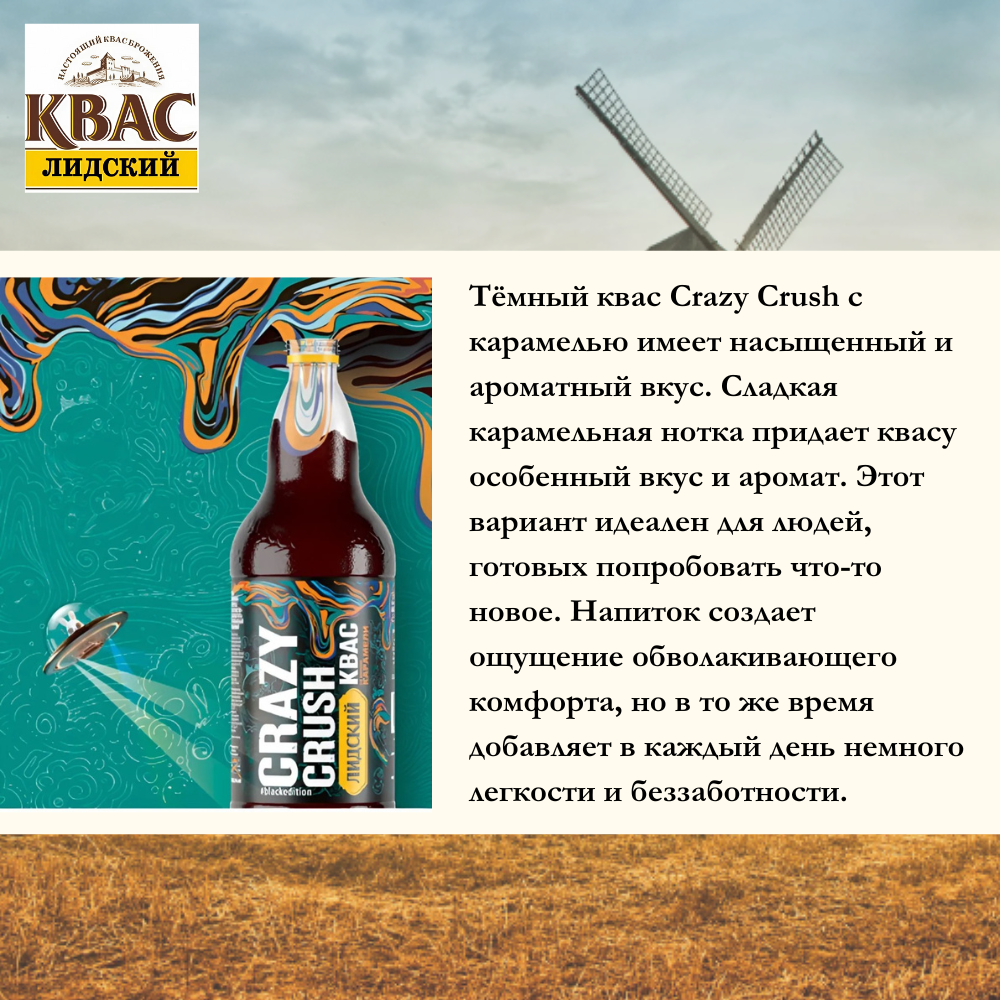 Квас "Лидский" CRAZY CRUSH со вкусом карамели, 1,5 л х 6 бутылок, пэт интересное: