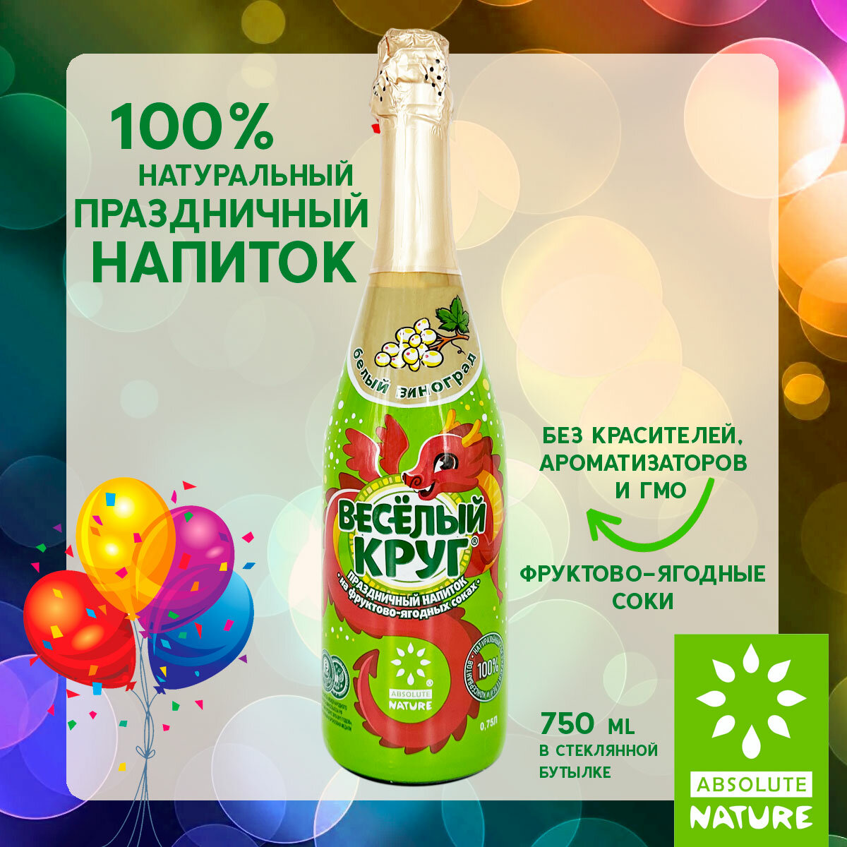 Детское шампанское Веселый Круг Белый виноград 0,75 л интересное: