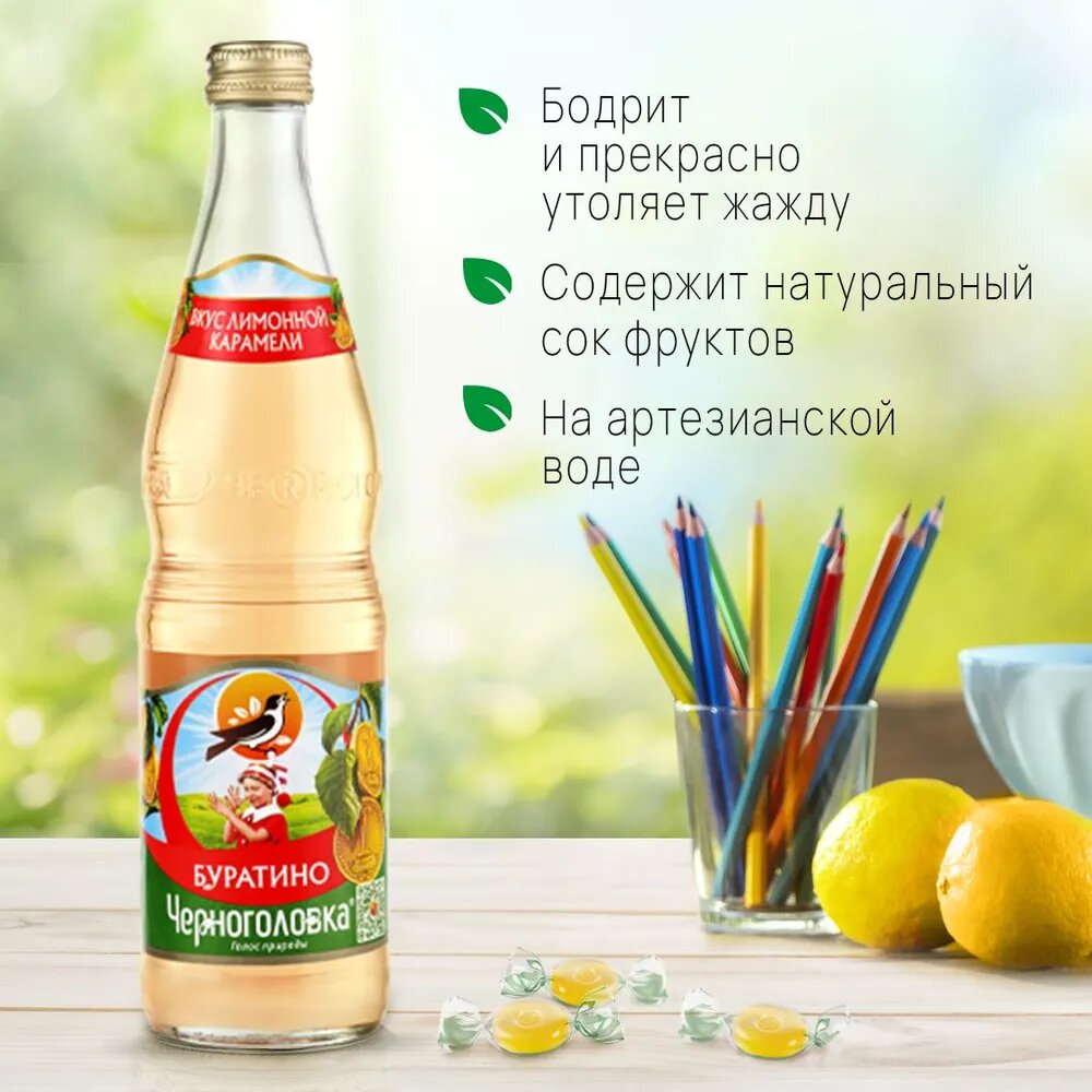 Газированный напиток "Черноголовка "Буратино", 12 шт по 0,5л, стекло интересное: