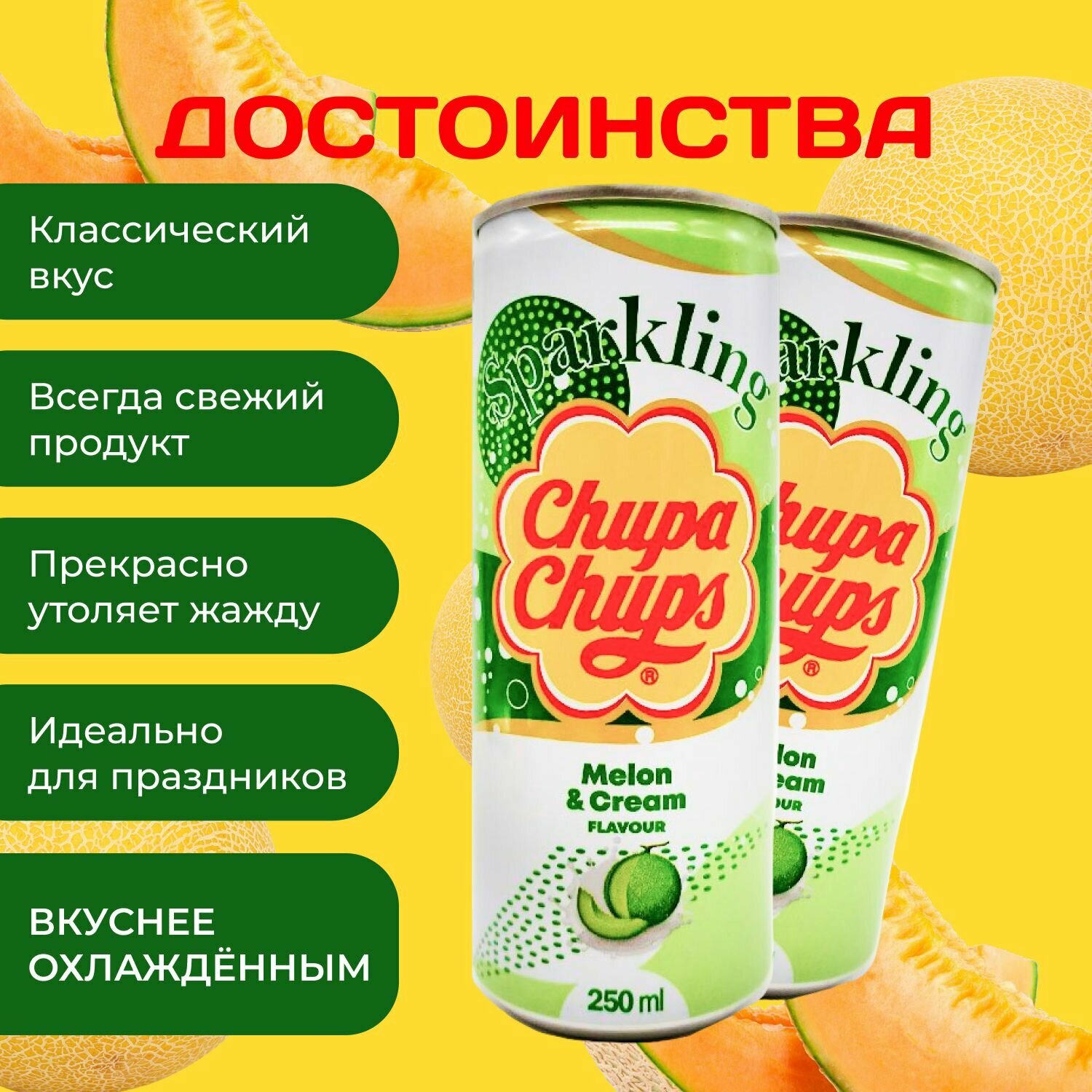 Напиток газированный Chupa Chups "Дыня-Крем" 0.345 мл. (2 шт.) Чупа-Чупс Melon