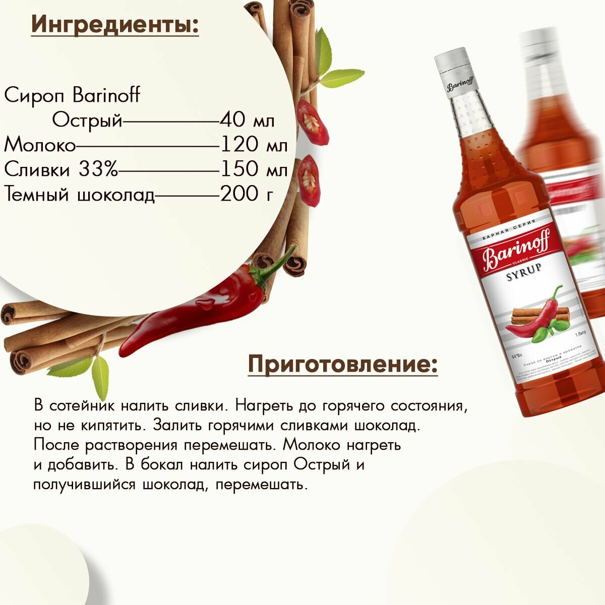 СохранитьСироп Barinoff Острый (для кофе, коктейлей, десертов, лимонада и мороженого), 1л интересное: