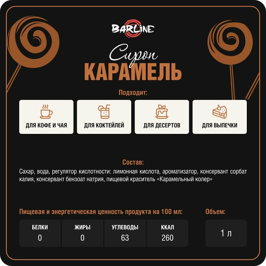 Barline Сироп Карамель (Caramel) 1л, для кофе, чая, коктейлей, напитков и десертов, ПЭТ , Барлайн