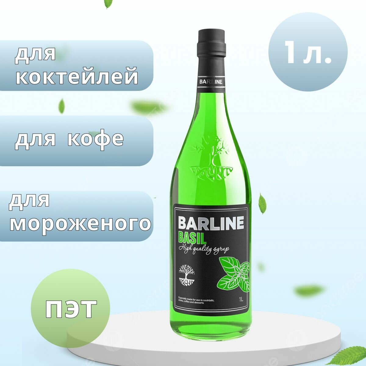 Купить Сироп Barline Базилик (Basil), 1 л, для кофе, чая, коктейлей и десертов, пластиковая бутылка, Барлайн