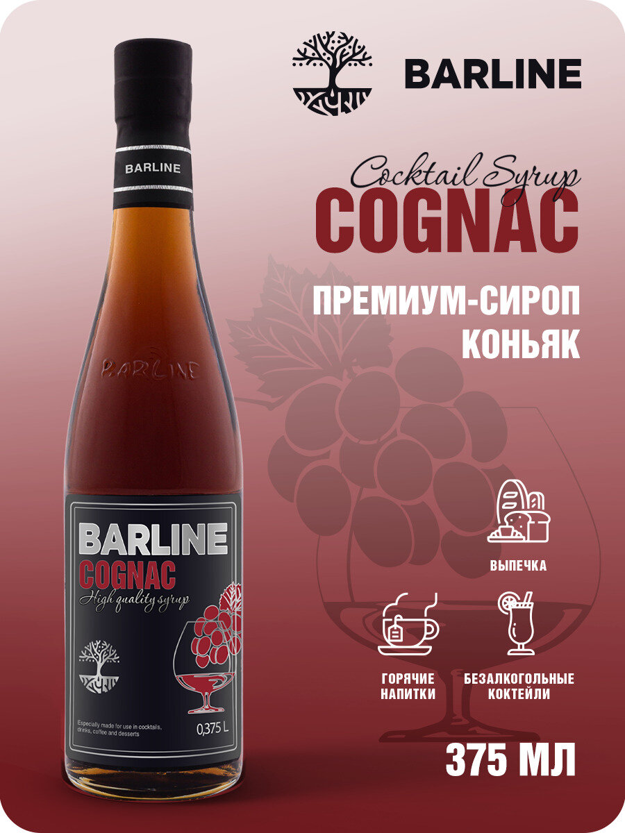 Сироп Barline Коньяк (Cognac), 375 мл, для кофе, чая, коктейлей и десертов, стеклянная бутылка, Барлайн интересное: