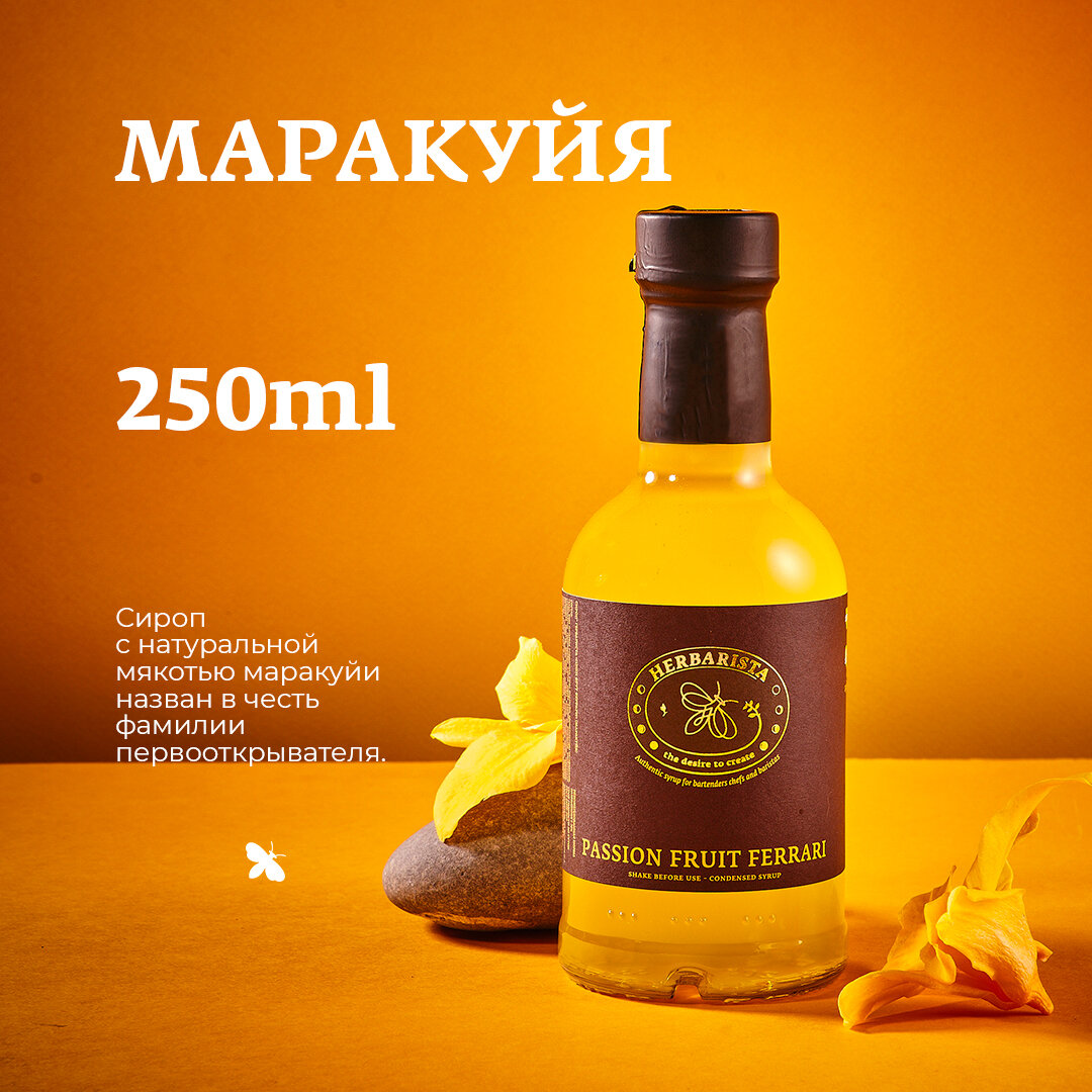 СохранитьСироп для кофе и коктейлей, десертов и выпечки Herbarista, Маракуйя Passion Fruit Ferrari, 250 мл интересное: