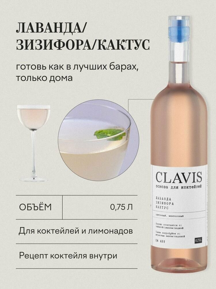Основа для 15 коктейлей CLAVIS Лимонный мирт, Иланг-иланг, Вербена, 750 мл