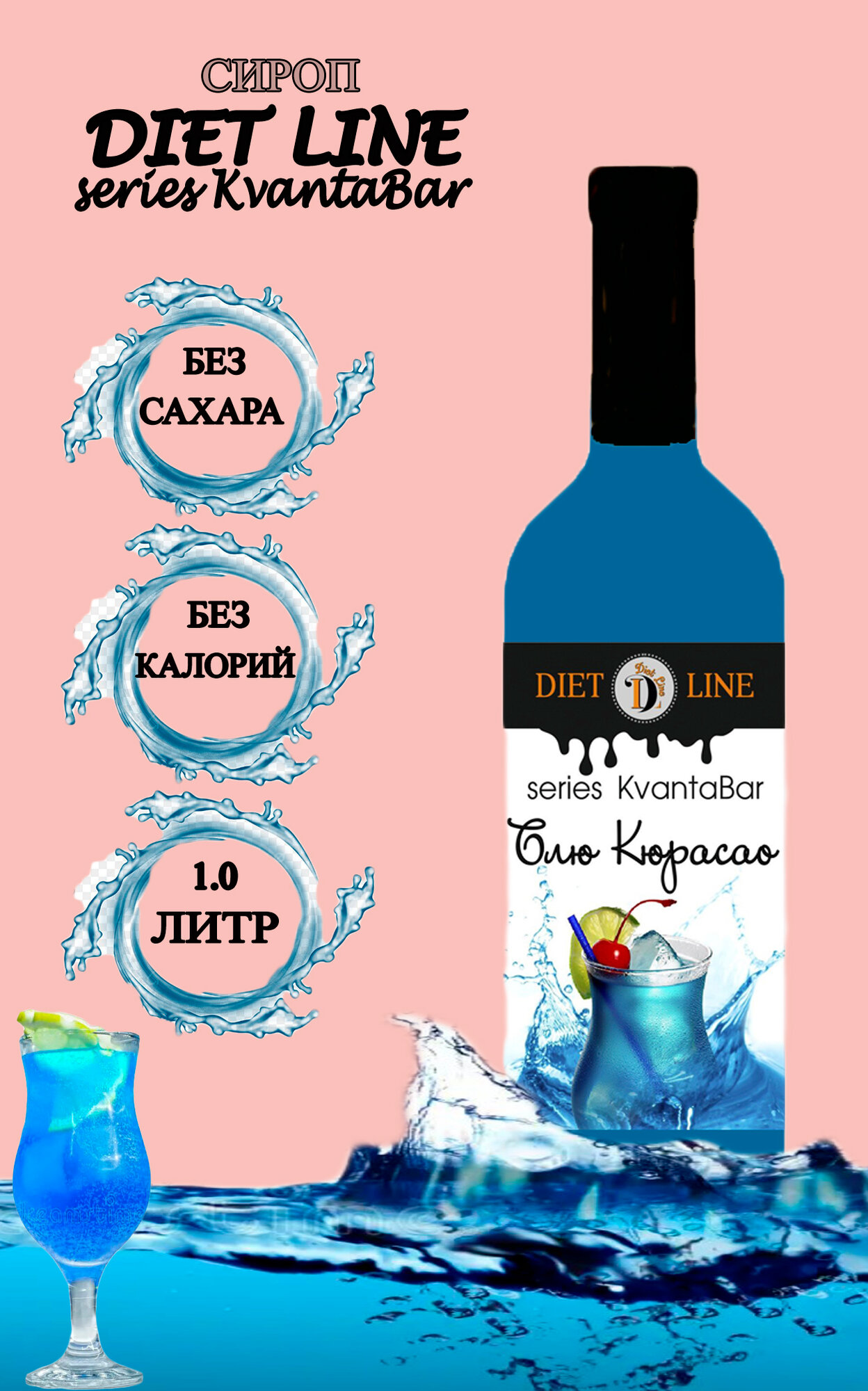 Купить Сироп без сахара DL series KvantaBar, Блю Кюрасао, ПЭТ, 1 литр