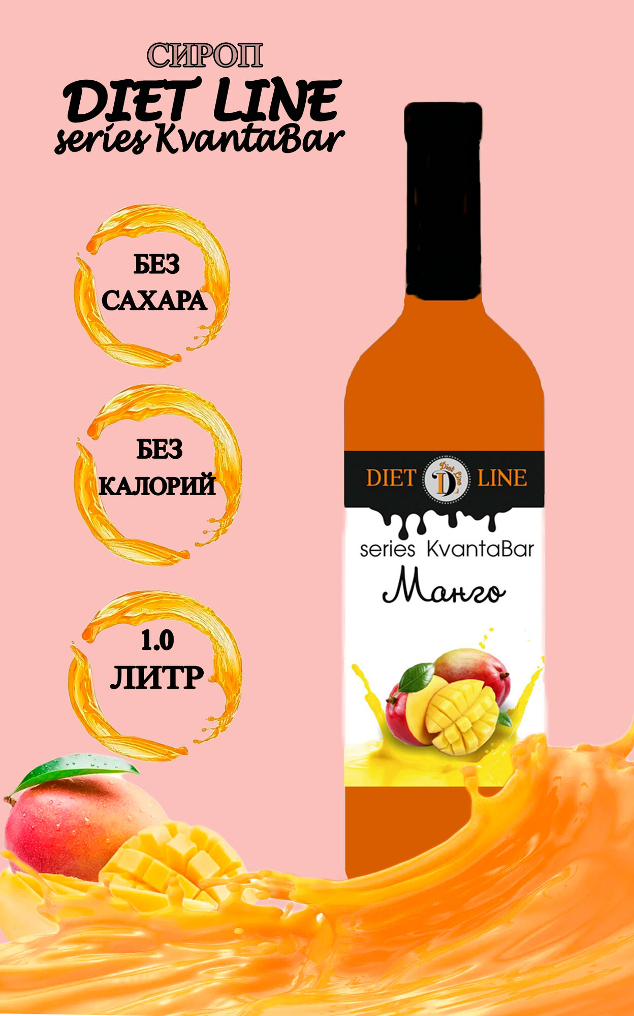 Купить Сироп без сахара DL series KvantaBar, Манго, ПЭТ, 1 литр
