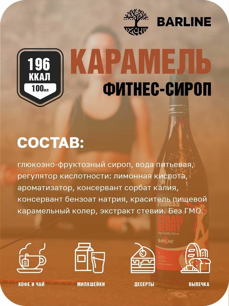 СохранитьСироп Barline Фитнес Карамель (Fitness Caramel), 1 л, без сахара, для кофе, чая, коктейлей и десертов, стеклянная бутылка с рассекателем, Барлайн интересное: