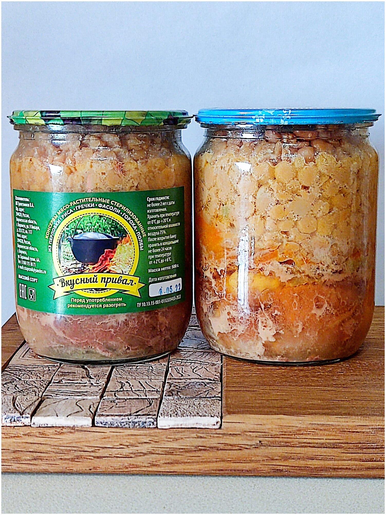 Вкусный привал / Каша гороховая со свининой / Домашняя тушенка / Каша / Тушенка / В стеклянной банке / Консервы мясные / Тушенка кусковая интересное: