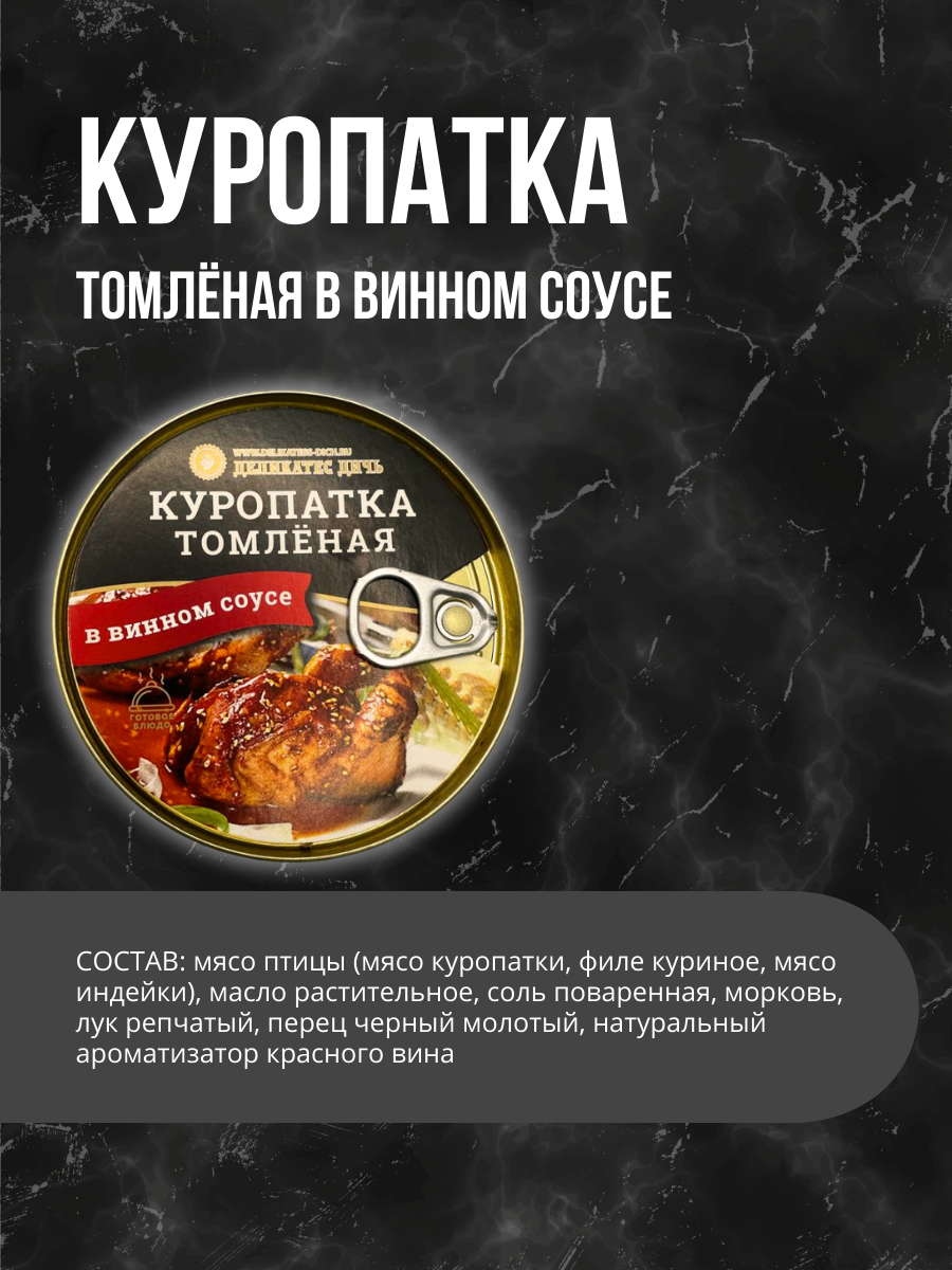 Куропатка томленая в винном соусе готовое блюдо 325 грамм интересное: