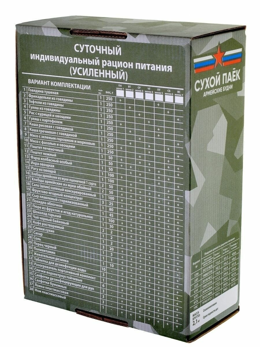 Cухой паёк "среда" на 1.5 суток Боевой Армейские Будни ИРП усиленный Меню №3 интересное:
