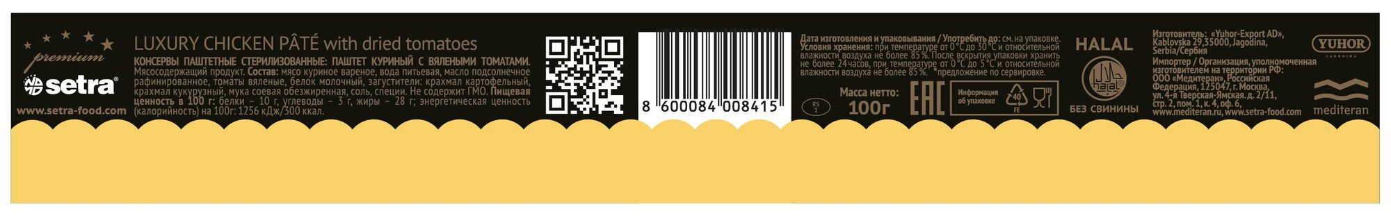Паштет Setra куриный HALAL с вялеными томатами 100 г интересное: