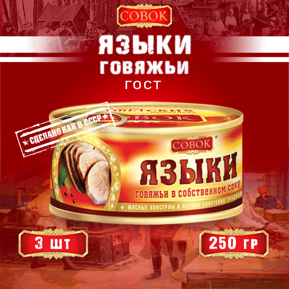 Языки говяжьи в собственном соку, ГОСТ, Совок, 3 шт. по 250 г интересное: