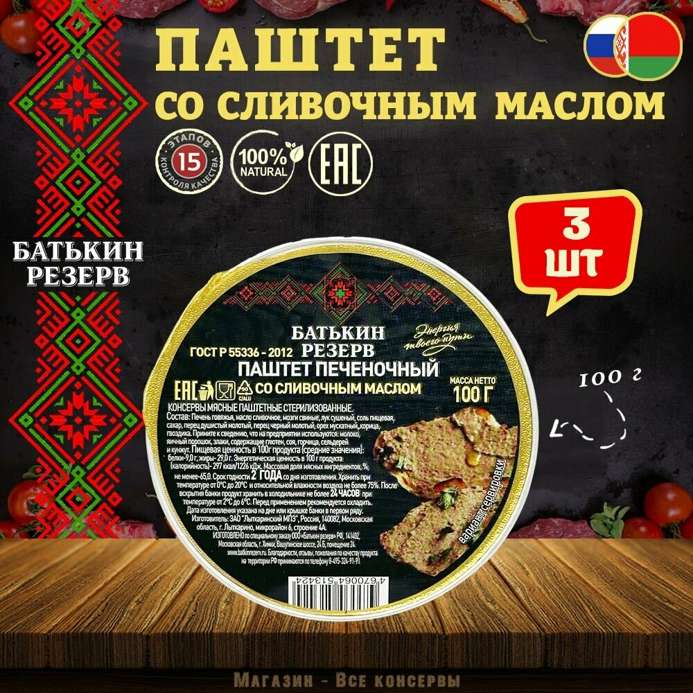 Ниже Вы можете прочитать отзывы на Паштет печеночный со сливочным маслом Батькин резерв, 3 шт по 100 г, ознакомится с подробными характеристиками, посмотреть интересные обзоры и фотографии на Паштет печеночный со сливочным маслом Батькин резерв, 3 шт по 100 г.